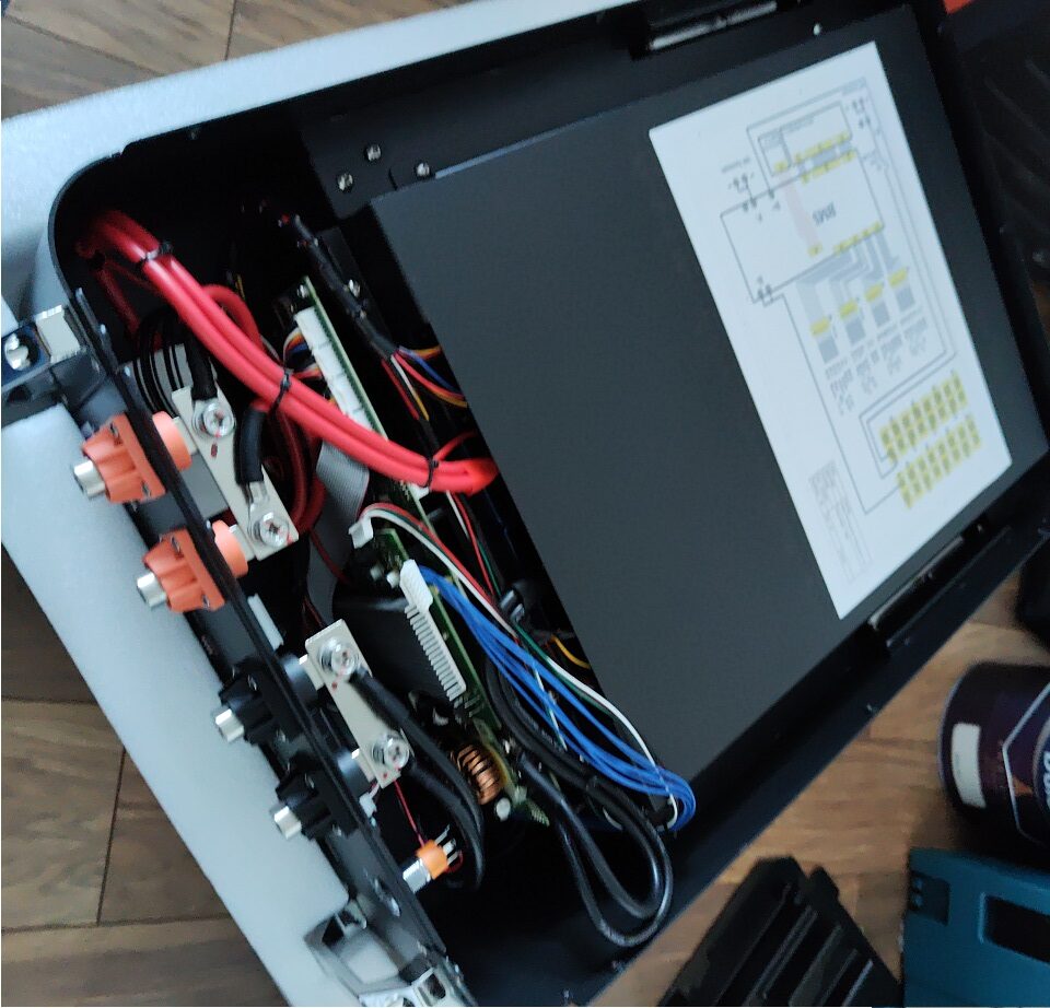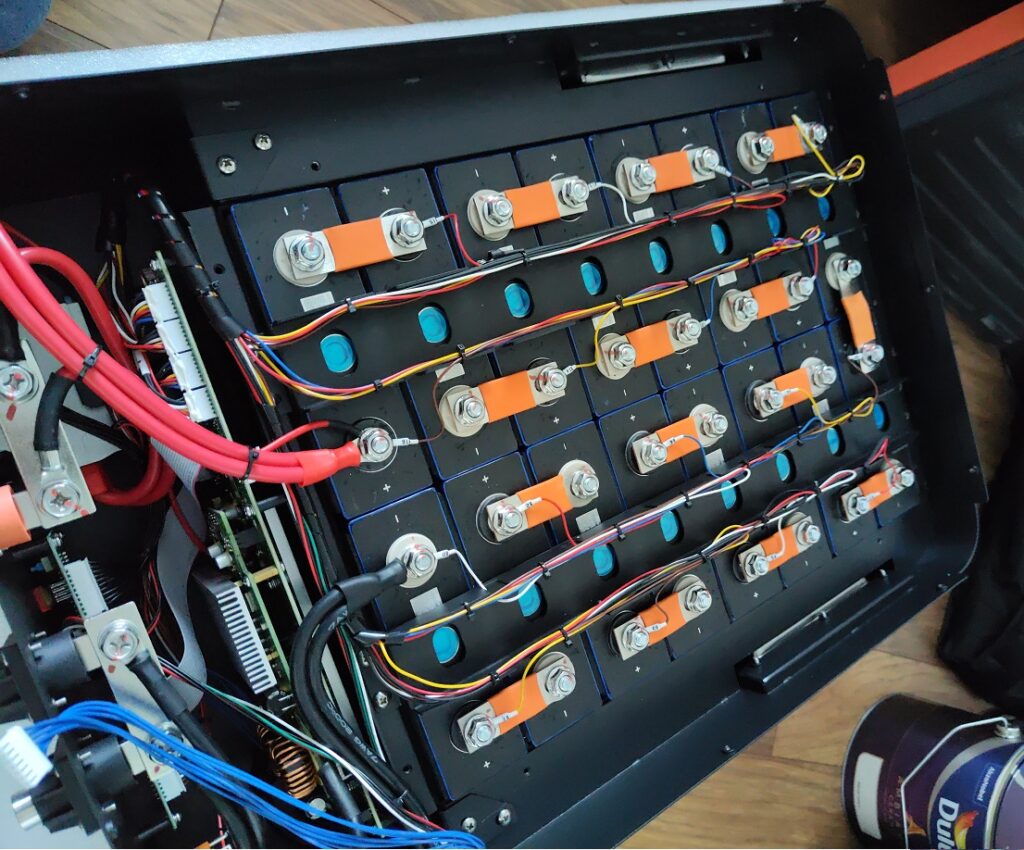 Po zdjęciu dodatkowej osłony dostajemy się do ogniw połączonych giętkimi busbarami.
