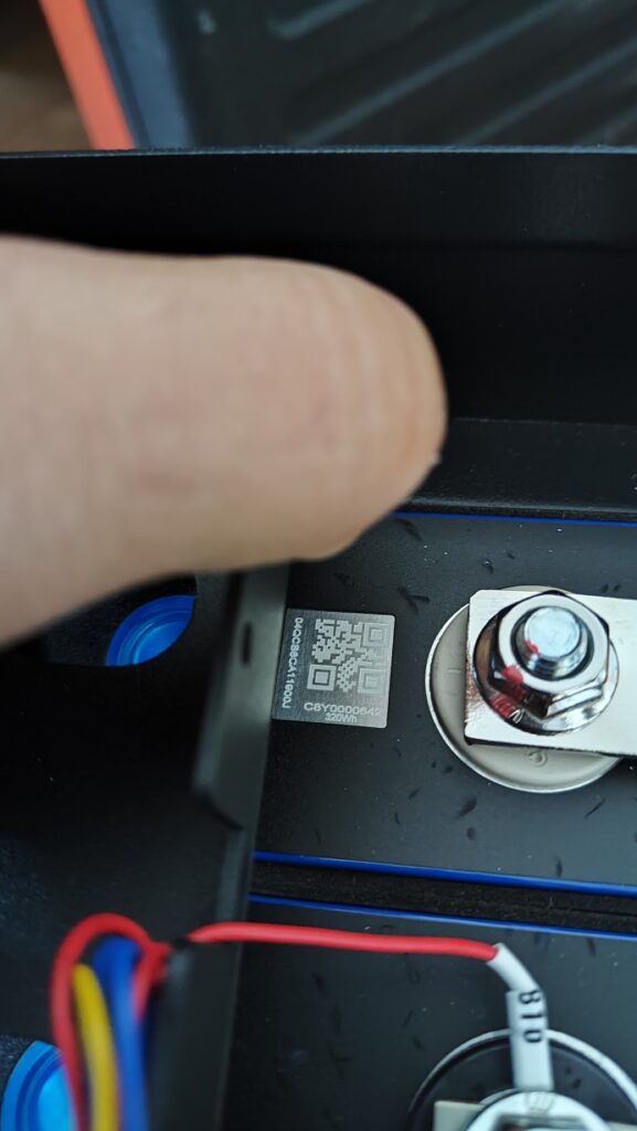 Jak widać bateria wyprodukowana została rok przed zakupem więc trochę przeleżała (zakup listopad 2023). Każde ogniwo posiada swój QR kod który możemy odszukać w aplikacji LFP4 QR Scanner.