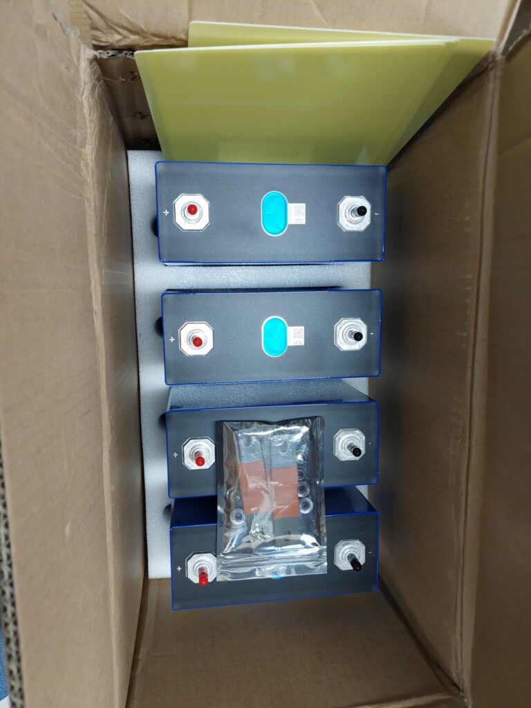 Ogniwa dostarczane są w opakowaniach zbiorczych po 4 szt. wraz z zestawem giętkich bus-barów oraz przekładkami EPOXY. Dostarcza ogniwa są typu GRADE A do zastosowań w HSEV, czyli HighSpeedElectricVehicle i oznaczone są +305Ah, co oznaczałoby, że maja większą pojemność niż w specyfikacji. Nie ufajmy jednak chińczykowi w 100% sprawdzimy to w przyszłości w kolejnym artykule zrobimy test pojemności. Według zeskanowanych QR kodów pojemności kształtują się w zakresie 312-314 Ah.